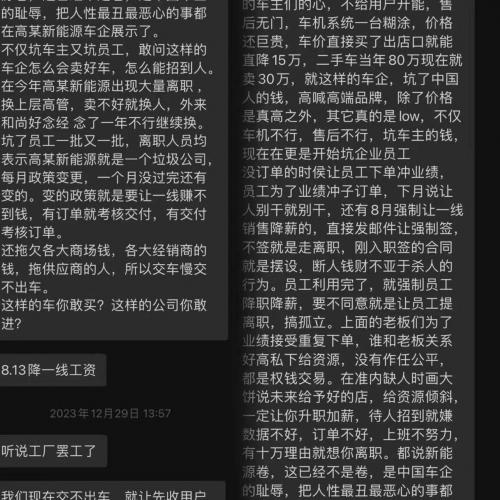 此外,还有爆料称高合汽车为了完成销售业绩,强制员工下单,并在下单后采取降薪甚至裁员的做法。更有甚者,高合汽车还接受重复下单的现象。这些情况彻底揭开了高合汽车的“遮羞布”,暴露出其外部资金、内部管理存在的问题。