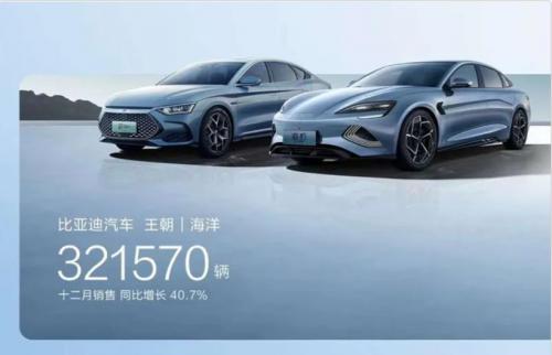 除此之外,比亚迪可谓本年度的大满贯选手:中国汽车市场品牌销量冠军;中国汽车市场车企销量冠军;中国汽车市场集团销量冠军;世界新能源汽车市场销量冠军;更值得关注的是,比亚迪单月销量再创神话,2023年12月已经突破了34万辆,成为了汽车行业中不加定语的销量冠军。