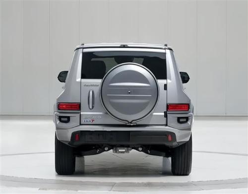 在侧面,车辆的机甲风格同样浓郁,外扩的轮眉带来更强的力量感,尺寸方面,新车长宽高分别为5090mm*2061mm*1952mm,轴距为3000mm;接近角和离去角分别为37.8度和37.6度,最大涉水深度为970mm。在尾部,车辆采用了外挂备胎,尾灯与后转向灯采用分体式的设计,细节处理比较精致。