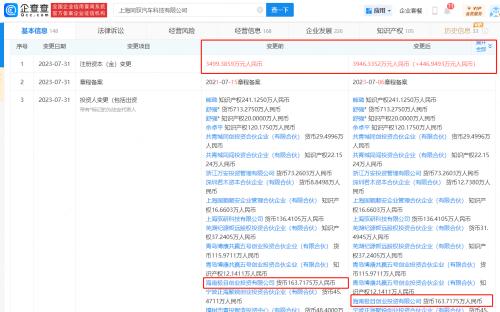 8月8日消息,企查查信息显示,近日,上海同驭汽车科技有限公司(以下简称“同驭汽车”)发生工商变更,股东新增小米旗下北京小米智造股权投资基金合伙企业(有限合伙)、建设银行旗下嘉兴宸玥股权投资合伙企业(有限合伙)等,公司注册资本由约3499.39万人民币增至约3946.34万人民币,增幅约12.77%。
