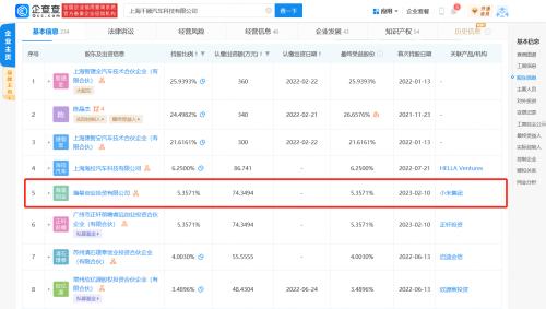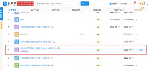 值得一提的是,2022年6月,小米旗下海南极目创业投资有限公司已入股该公司;同年8月,在同驭汽车2亿元A+轮融资中,小米产投与东风交银联合领投。
