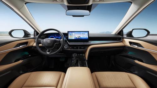 坐进车内,第九代凯美瑞换装了12.3英寸悬浮式中控屏,并配备了AR-HUD抬头显示功能,整体科技感十足。此外新车还配备了无线充电板可以为手机无线充电,主副驾驶下护板共增加了13块吸音棉,车门饰毡换成了吸音更好的消音材料,后车窗还增加了拥有0.76毫米隔音层的双层隔音玻璃,进一步提升了整车NVH的表现。
