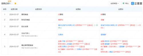 今年1月,上海市监局网站发布经营者集中简易案件公示显示,奇瑞汽车股份有限公司与福州左海汽车有限公司签署协议,奇瑞股份收购左海汽车拥有的福州青口控股有限公司100%股权。