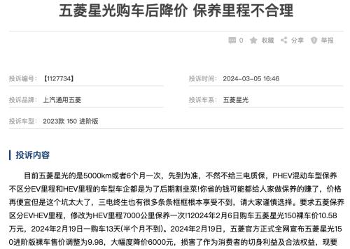 购买五菱星光2023款150进阶版的王先生就表示,自己2月6日购买的五菱星光150裸车价是10.58万元,购车13天后不足半个月,五菱官方突然全网宣布降价,这样的行为损害了消费者的切身利益及合法权益,现要求上汽通用五菱股份有限公司退补其购车款全部差价6000元。