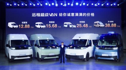 本次发布会上,远程超级VAN共推出四款车型,分别从不同用户使用场景出发,满足VAN品类全场景使用需求。专攻物流市场的“创富版”,售价12.88万起;满足多功能需求的“智富版”,售价15.68万起;专为商旅出行打造的“悦程版”,售价25.48万起;另外远程超级VAN还颠覆性推出定制版车型X-VAN,千变VAN化,满足用户的无限想象,售价38.88万起。