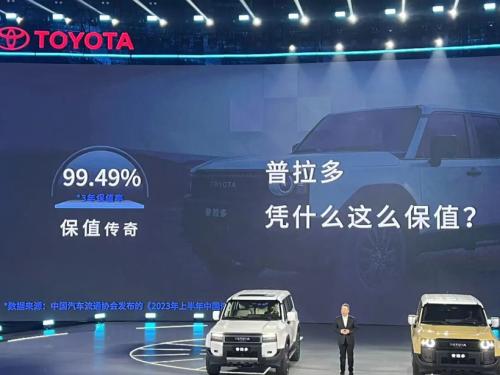 在坦克、方程豹、捷途等国产新能源方盒子面前,新款普拉多依旧有着自己的品牌壁垒,这也是发布会一开头就摆出保值率的原因。