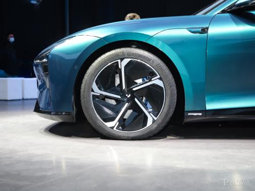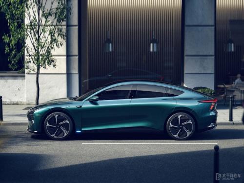 车身侧面,极越07采用轿跑式车身设计,车身简洁流畅,线条优雅,比例非常协调,搭配五辐式刀锋轮毂,呈现出极强的运动效果。另外,极越07还采用无门把手电动感应门设计。