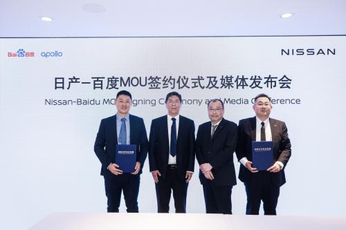 4月25日,日产(中国)投资有限公司与百度在线网络技术(北京)有限公司共同签署了谅解备忘录,双方将开展在人工智能(以下简称AI)与智能汽车领域战略合作的可行性研究。