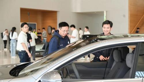 没有面红耳赤的争吵,只有德系豪华车主好奇地围在NT2.0平台底盘前,打量悬架和电池结构;没有唇枪舌剑的纷扰,只有传统燃油车粉丝听着工作人员介绍“NOP+”和“激光雷达的作用”;没有撕逼翻脸的喧闹,只有参观蔚来第二先进制造基地的队伍,看着宇树科技Unitree机器人的操作、AGV的穿梭,留下一声声惊叹。