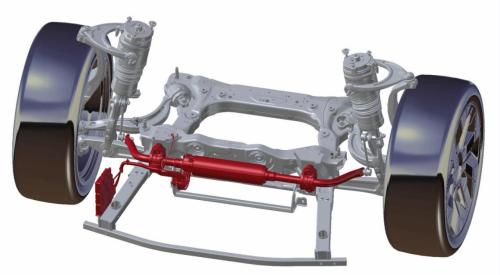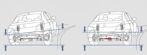 当车辆高速转弯时,离心力会使车身向外倾斜(侧倾),被动稳定杆的外侧摇臂因此被向下按压,产生的扭力会传导到内侧摇臂,将内侧车身也拉向下方,这样就缓解了车身向外倾斜的幅度,这就是被动稳定杆“抗侧倾”的原理。但是,当遇到路面的起伏冲击一侧车轮和车身时,在该侧产生的扭力同样会传导到另一侧的车轮和车身,令驾乘人员感到不适。就是说,在有效抗侧倾和保障舒适性这两个相互矛盾的性能要求下,被动稳定杆会陷入两难。