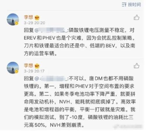 五年前,李想曾对磷酸铁锂下如此判断。在他看来,磷酸铁锂电池容易出现电池电量测算不准的问题,无论是实际电量比估算电量更大或者更小,都有可能导致汽车发生故障,影响正常驾驶。