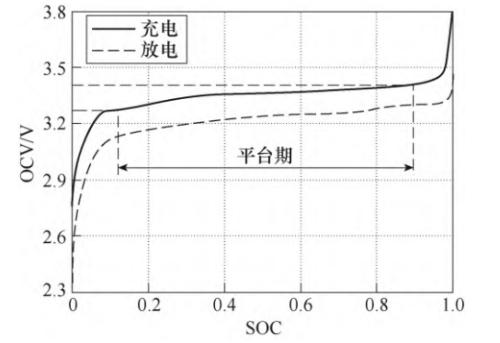 车辆估算电量通常是通过测量电池电压。从下图中可以看出,当磷酸铁锂电池剩余电量(SOC)在20%至80%的时候,开路电压(OCV)曲线过于平坦,并没有显著变化。这也就导致了磷酸铁锂很难依靠电压来精准地估算电量。