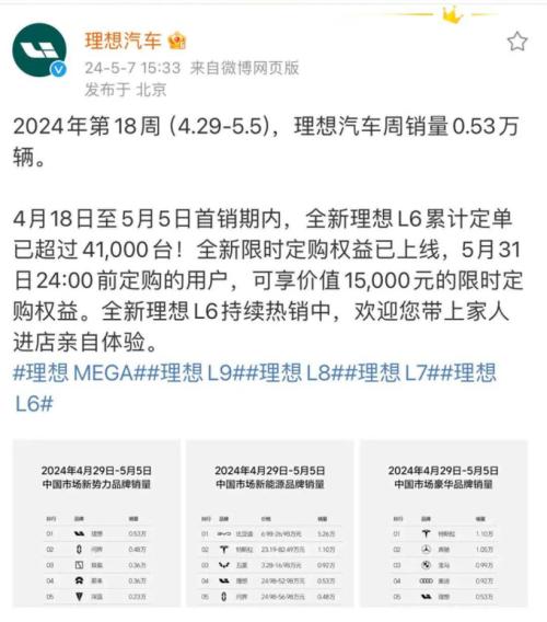 在此情况下,理想L6能取得目前的好成绩并不令人意外。