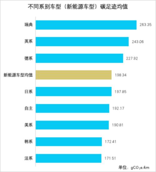 新能源车型碳足迹均值计算方法:由该分类下新能源车型碳足迹算数平均值计算得出,未进行销量加权处理。