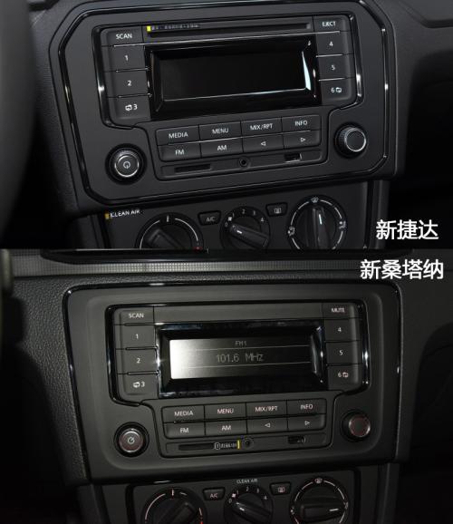 在内饰上,桑塔纳和捷达都秉承了大众风格,但是又不尽相同。新桑塔纳的高配车型中控台上采用了大面积桃木饰板,而乞丐车型自然也就取消了这个设计,同时一些钢琴烤漆也去掉了,中控大屏被一个黑白液晶屏替代。虽说失去了档次感,但是实用主义的车型不就是这样吗?