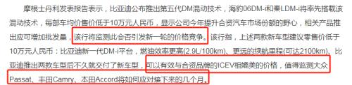 较为权威的声音来自国际金融服务公司摩根士丹利,从其发布的公告来看,至少可以提炼两个点;一,大摩对DM 5.0的认可,其次,搭载DM 5.0的秦L与海豹06 DM-i的上市使其对合资汽车的处境担忧,甚至特别强调了将监测大众Passat、丰田Camry、本田Accord将如何应对接下来的几个月。