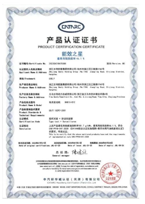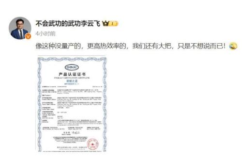 同时,比亚迪又发了一张中汽研认证的热效率46.5%证书,发证时间是2024年3月19日。比吉利的46.1%,又高出了0.4%。比亚迪李云飞还说:“像这种没量产的,更高热效率的,我们还有大把,不说而已。”