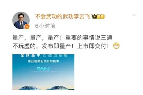 面对吉利的挑战,比亚迪集团品牌及公关处总经理李云飞回应称,“量产,量产,量产!重要的事情说三遍”。实际上,李云飞说的没错,吉利那款热效率达到46.1%的发动机尚未量产。