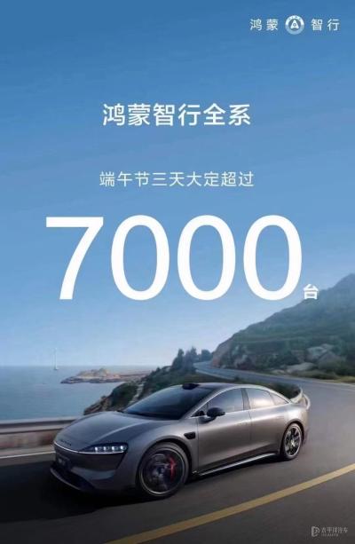 鸿蒙智行全系车型端午节三天大定超7000台