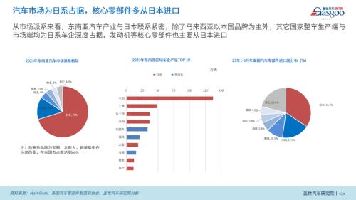 尽管近几年中国汽车品牌在东南亚市场取得了长足进步,但需要注意的是,目前东南亚汽车产业仍与日本联系紧密,除了马来西亚以本国品牌为主之外,东南亚其他国家整车生产端与市场端均为日系车企深度占据,因此东南亚市场素有“日本车企的后花园”之称。