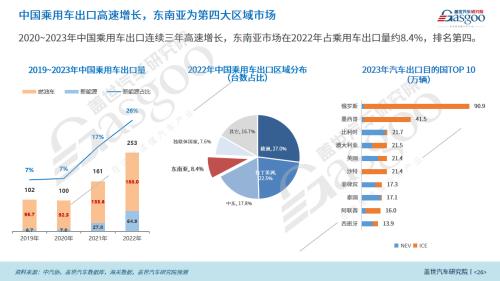 从出口地域来看,欧洲、中东等地近年来已是中国汽车重要的出口目的地,东南亚、墨西哥等也成为出海新热门。2022年,东南亚市场占中国乘用车出口量的约8.4%,排名第四;2023年,菲律宾、泰国等东南亚国家位列中国汽车出口目的国前十。