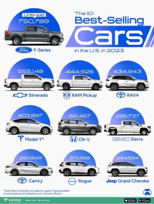 同时,美国的消费者更偏爱皮卡车型、SUV车型,这些车型在电动车领域更是十分稀有。从上图可以看出,2023年美国最畅销的汽车TOP10中,大多为SUV或皮卡车型,特斯拉仅有Model Y一款电动SUV上榜,竞争压力可想而知。