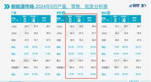 首先就是中国电动汽车市场同样面临着增长有限的情况。根据乘联会的数据,2024年5月我国纯电动汽车销量为49.5万辆,同比增长27.4%,插混车型(含增程)的销量为30.9万辆,同比增长61.1%,这说明相对去年而言,电动车的增速正在放缓,可油可电的PHEV车型正在成为新宠。
