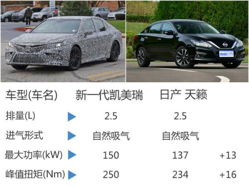 新一代凯美瑞将基于丰田全新的TNGA平台打造,丰田在国内新建的TNGA平台生产线预计将在2017年底竣工投产。未来新一代凯美瑞国产之后,将与日产天籁等同级别车型竞争。相比而言,凯美瑞输出更强。