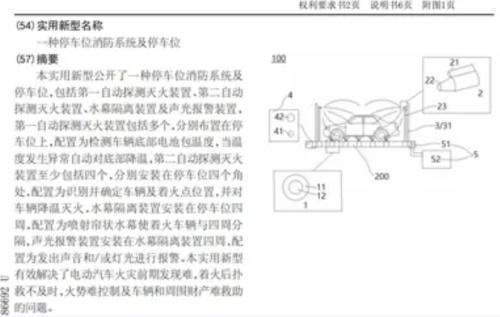 该实用新型有效解决了电动汽车火灾前期发现难,着火后扑救不及时,火势难控制及车辆和周围财产难救助的问题。对于密集停放新能源汽车的停车场或充电站而言,这样的发明专利极具实用意义。