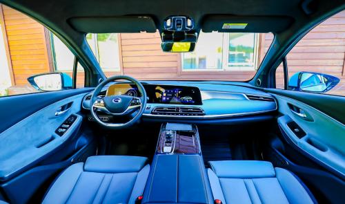 内饰方面,内饰设计方面,Aion LX采用了顶级Nappa座椅、真皮座椅、麂皮绒顶棚等。12.3英寸新车仪表盘和中控屏幕采用了一体式曲面屏设计,整体倾向于驾驶员一侧。同时,AION LX还使用了升降式旋钮换挡机构,并配备有电子驻车制动、AUTO HOLD等功能。