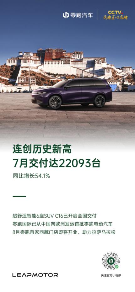 零跑汽车就是其中之一,7月零跑汽车再次交出了超2万辆的月度交付量,持续刷新月销记录。