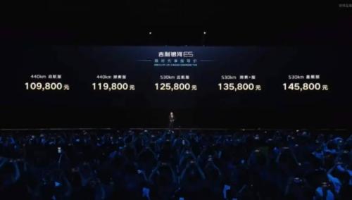同时,官方还表示,10月1日前完成大定锁单的用户,将额外享受3000元的先享限时补贴,其限时先享价为10.98-14.58万元。此前,吉利银河E5的预售价定在了12.3-15.7万元,而上市后的入门定价下调超过1.3万元。