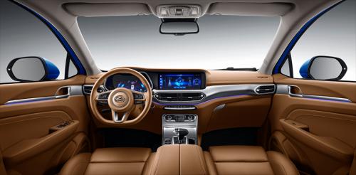 内饰设计更偏向于豪华风格,内饰采用了深棕与浅棕的颜色搭配,凸显豪华氛围。中控上层采用了软性材质,下方液晶仪表盘与中控屏幕设计在同一个区域,并没有采用流行的悬浮式屏幕设计。中控屏幕下是镀铬出风口,两边采用木纹饰板。各种旋钮和按键设置在档杆前部,方便司机盲操作。