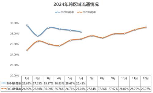 据流通协会介绍,受竞争加剧和消费需求变化的双重影响,今年2月开始,二手车均价持续下探,6月降至6.44万元;当前二手车市场面临较大竞争压力,消费者需求正发生深刻变化。同时,跨区域流通活跃是另一亮点,今年上半年二手车平均转籍率为28.8%,同比增长2.6%,反映了二手车在全国范围内的强大流通性和高度活跃度。