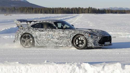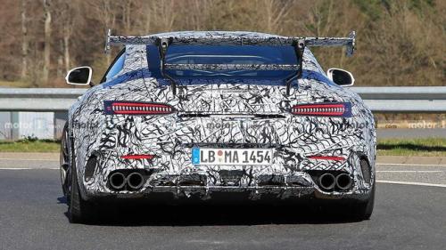 从曝光的谍照来看,测试原型车比我们都熟悉的梅赛德斯-AMG GT R更具侵略性,甚至与梅赛德斯-AMG GT3和GT4赛车有所混淆。不过,从前部发动机罩通风口及巨大前喉,到后部可调尾唇、四边形排气尾管及硕大尾翼,都让人轻松看出这是台梅赛德斯-AMG GT R。