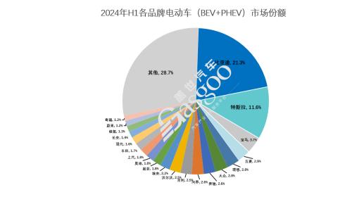 就今年上半年的品牌表现来看,前三甲依然较稳定。比亚迪继续以两位数的增速增长,且遥遥领先于特斯拉,目前占据全球电动车市场21.3%的份额。