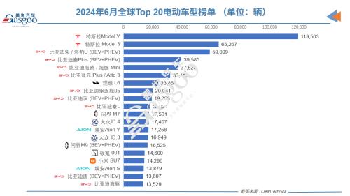6月全球Top 20电动车型榜单:小米SU7上榜,五菱OUT