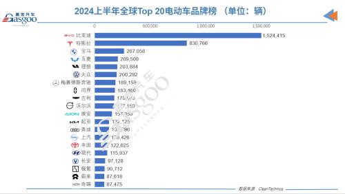 上半年全球Top 20电动车品牌榜:比亚迪遥遥领先