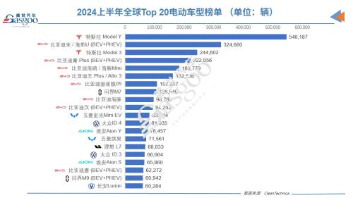 上半年全球Top 20电动车型榜单:问界M7跻身前十