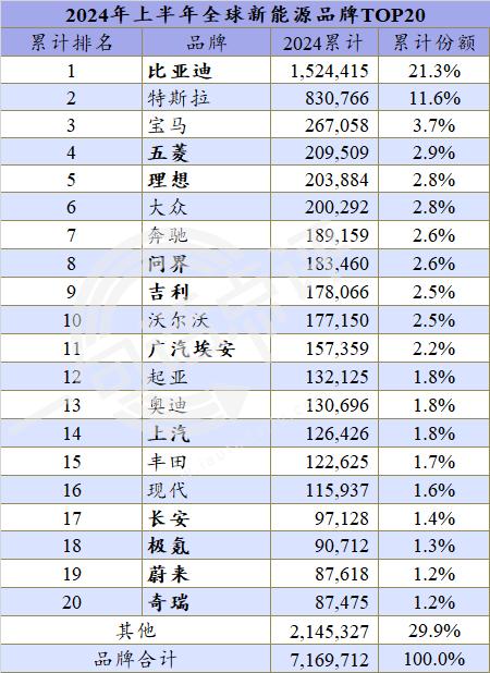 虽然时间已来到8月,全球新能源市场的两大巨头——比亚迪和特斯拉也早已交出了上半年答卷,分别为160.7万辆和83.8万辆,但日前EV-Volumes统计的6月和上半年全球新能源市场畅销车型和热门品牌榜单才出炉。