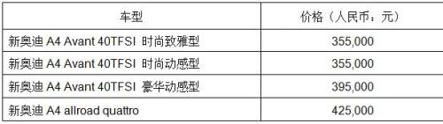 中国汽车新闻网11月9日讯近日,新奥迪A4旅行车家族——新奥迪A4 allroad quattro和新奥迪A4 Avant同步开启预售,并将于今年广州车展上首次亮相。其中,新奥迪A4 allroad quattro预售价格为42.5万,新奥迪A4 Avant预售价格区间为35.5万-39.5万。两款新车型推出为用户带来兼具实用与性能的旅行车生活方式。
