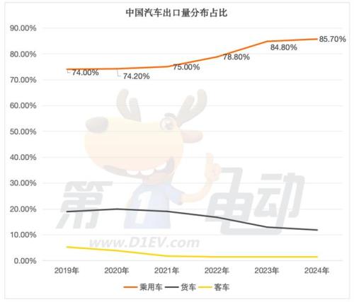 2024年1-7月乘用车新能源车出口占乘用车38%,而货车出口的新能源车占比为4%,客车出口的新能源占比是11%,这意味着中国新能源乘用车在国内外认可度较高,客车等新能源车在海外市场需求较低。