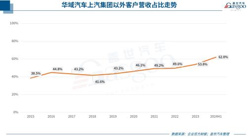 今年上半年,这一比例继续攀升。财报显示,按汇总口径统计(含海外),上半年,华域汽车主营业务收入的62%来自于上汽集团以外的整车客户。