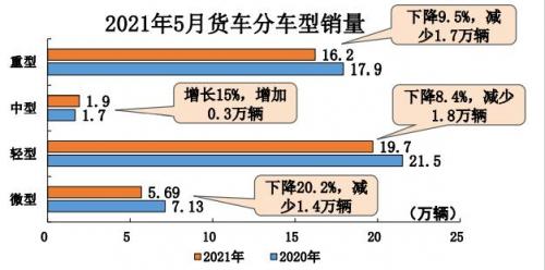 1-5月,商用车产销234.1万辆和243.8万辆,同比增长27.8%和31.9%。在商用车主要品种中,与上年同期相比,客车和货车产销继续保持较快增长,增速比1-4月均呈回落。