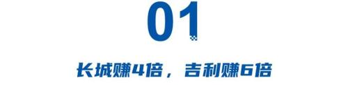 长城狂赚4倍,但还有比它更多的,即吉利,半年净利润同比增幅达到601.85%,净利润为105.3亿元。