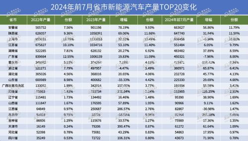 这也导致广东新能源产量增幅较慢。广东今年前7月新能源销量为45万辆,仅排名第6。