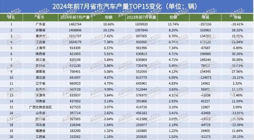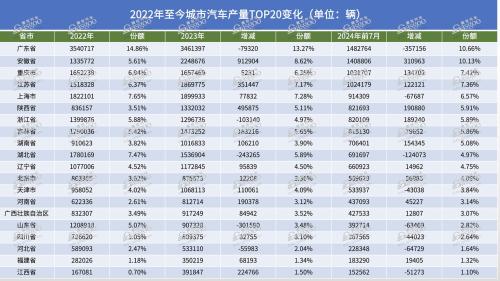 近期,盖世汽车整理了2024年前7月省市汽车产量,发现大部分地区产量呈现增长态势。然而,聚焦传统汽车产量大省时,情况却有所不同。包括广东、上海、北京、湖北、重庆、吉林等省市,要么产量和市场份额出现下滑,要么维持原有水平,很少有大幅突破的。