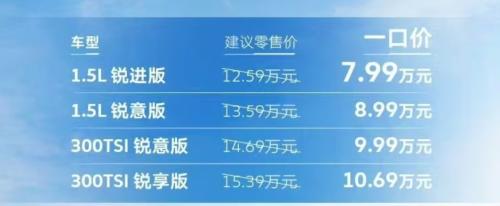 到这里,一切都还正常,一款德系紧凑级SUV,12.59万元的起售价,在当前的国内市场大环境中,也算是中规中矩。但接下来官方放出的限时优惠政策,绝对是出乎大多数人的预料,途岳新锐的入门车型锐进版,限时一口价7.99万元,顶配的锐享版,限时一口价10.69万元,途岳新锐成为迄今为止价格门槛最低的德系SUV。