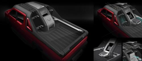 极具拓展性的货箱,摇身一变成为钓鱼爱好者的新装备。一体化可拆卸式的龙门架,采用极致灰与哑光黑配色,增添了整体高级感,上端延伸至车顶,配备了卡槽方便收纳鱼竿;下端包覆货箱,并安装了侧挂钩有利固定货物。