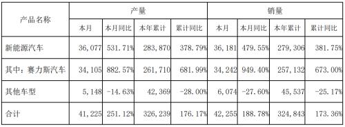 今年上半年,问界累计销量超18万辆,仅次于理想汽车位居新势力品牌第二。今年1-8月,赛力斯新能源汽车累计销量达279306辆,同比增长381.75%。